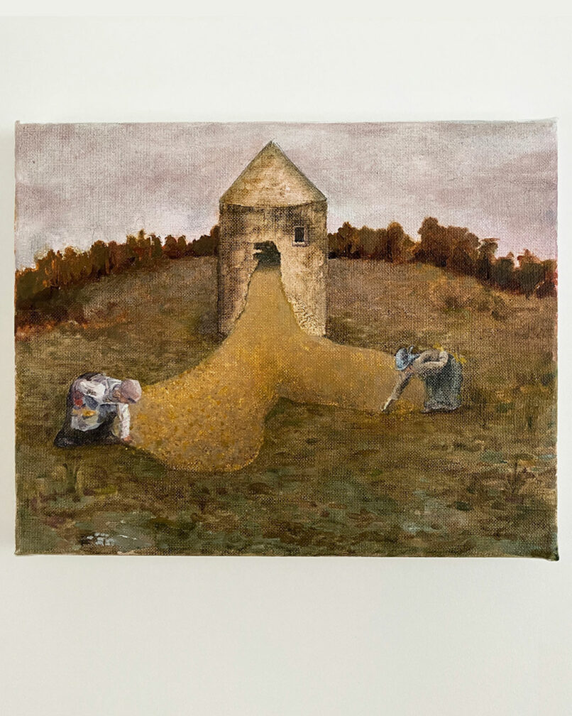 Constanza Piaggio travaille par superposition d’images, en lien à l’histoire de l’art et la nature, déchirant la surface photographique dans un geste délibéré de rupture et d’absence. Zoé Brunet-Jailly explore sa mémoire personnelle à travers des peintures fonctionnant comme un jeu de mémoire, où chaque fragment encapsulé est reconfiguré en de nouvelles associations. Martin Kaulen utilise des matériaux issus de l’extractivisme pour réviser la mémoire coloniale à partir d’un présent critique, tandis que Damien Caccia évoque l’oubli à travers des peintures et images qui se délavent ou se superposent. Ensemble, leurs œuvres révèlent comment la mémoire se fragmente, se transforme et se réinvente au présent.