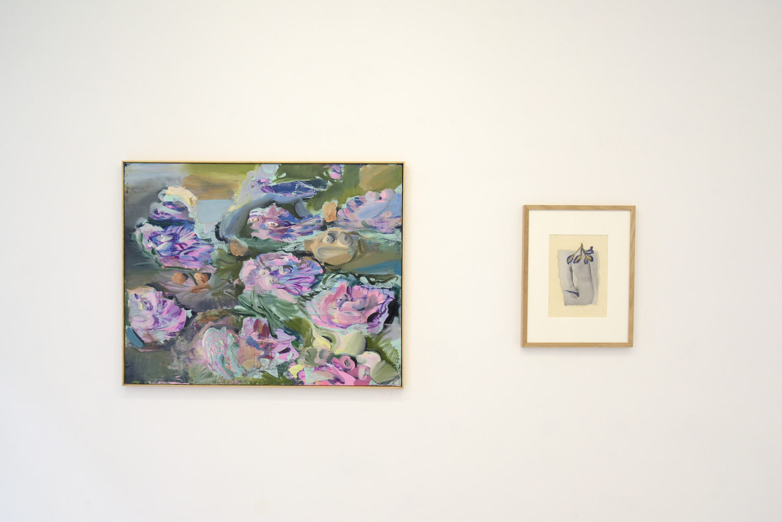On pourrait commencer par « Il était une fois », à en croire l’emprunt marqué à l’imagerie de l’Antiquité gréco-romaine chez Étienne François, dont les tableaux mettent en scène ruines de temples, fragments de statues, vases ou amphores dans lesquelles des fleurs auraient repoussé. La végétation paraît avoir repris du terrain jusque dans les collages de Sofia Fanego, où les corps semblent y être statuaires. Ne restent du colosse que ses deux pieds, que Manon Pretto nous présente dans ses installations. Leur chute a fait voler le sol en éclats, comme une déflagration. On pourrait donc bien croire, dans cette exposition, que l’on arrive post effondrement.