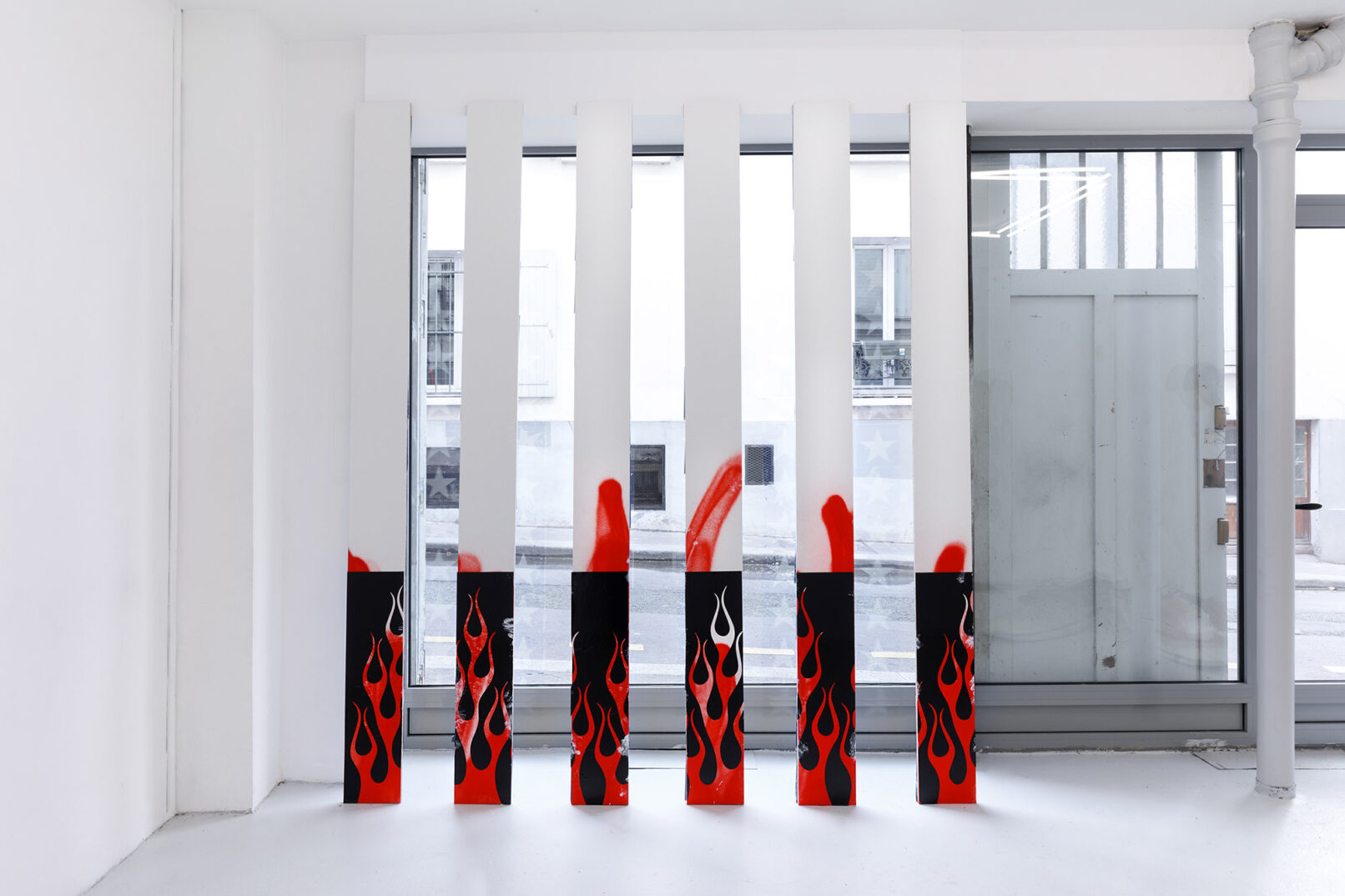 A la manière des Beyblades, toupies ornées de lames, les artistes de cet Assemblage#37 Beyblade concoivent l’exposition comme un terrain de jeu. Dans une logique d’hacker curieux, ils ont joué à fendre les signes, les corps ou les objets pour mieux les détourner. Par ce jeu archaïque, dont les mouvements miment ceux des planètes, ils nous invitent à plonger dans un vortex où se rejoignent leur logiques procédurales.