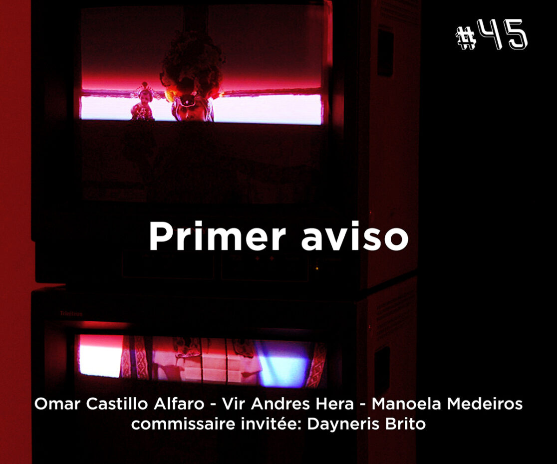 Primer aviso invite les artistes multidisciplinaires Manoela Medeiros , Vir Andrés Hera et Omar Castillo Alfaro à lancer un avertissement -A-V-E-R-T-I-S-S-E-M-E-N-T; un premier coup de feu collectif.