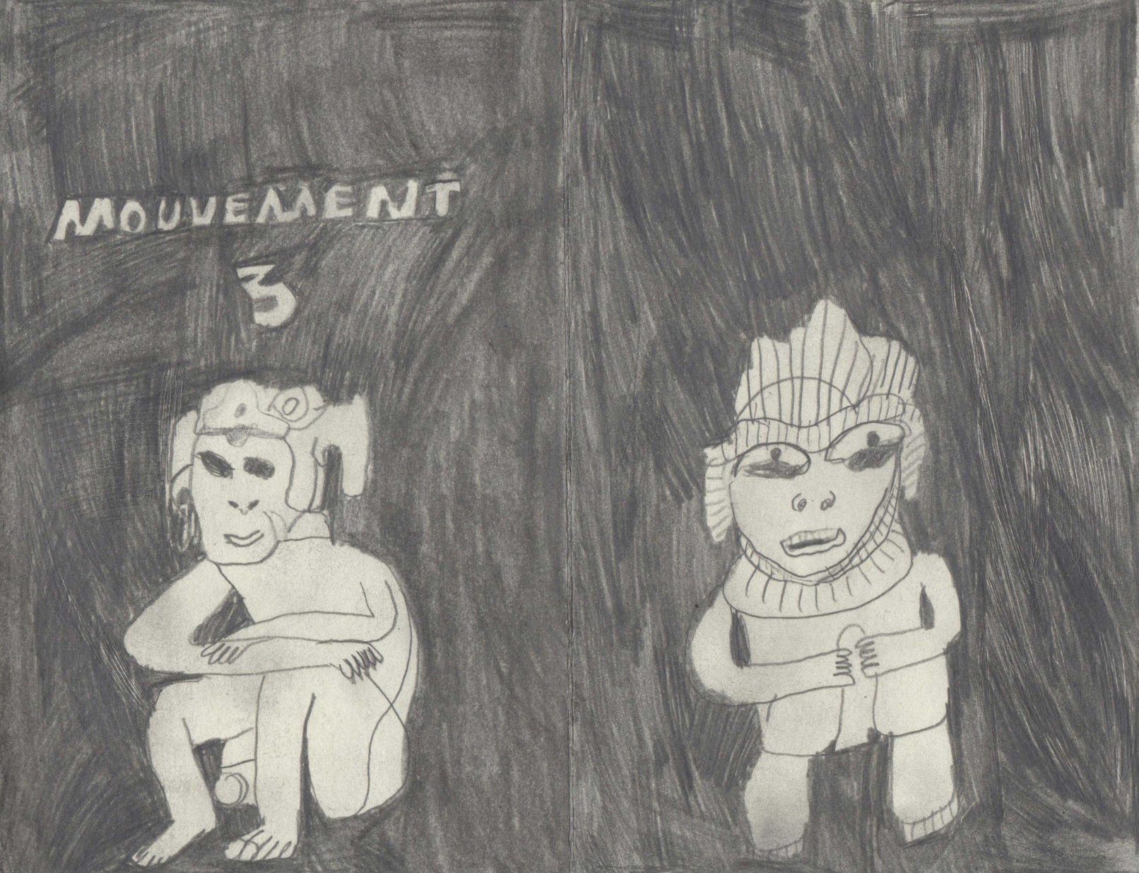 Yanieb Fabre a la compulsion du dessin. Elle travaille sur le thème du «nahual», esprit qui réside dans les animaux et certaines plantes, le revisitant d’une forme contemporaine. Elle dessine sur des cahiers et des grands rouleaux, qu’elle remplit en entier avec des figures évoquant les cultures précolombiennes. Parfois ses dessins servent comme point de départ à des performances qu’elle filme, et ils sont toujours le support de sa pensée.